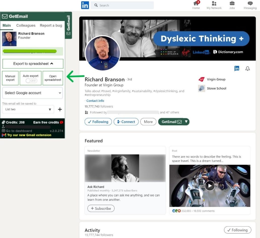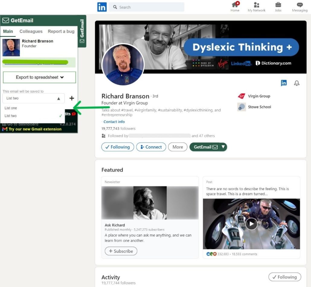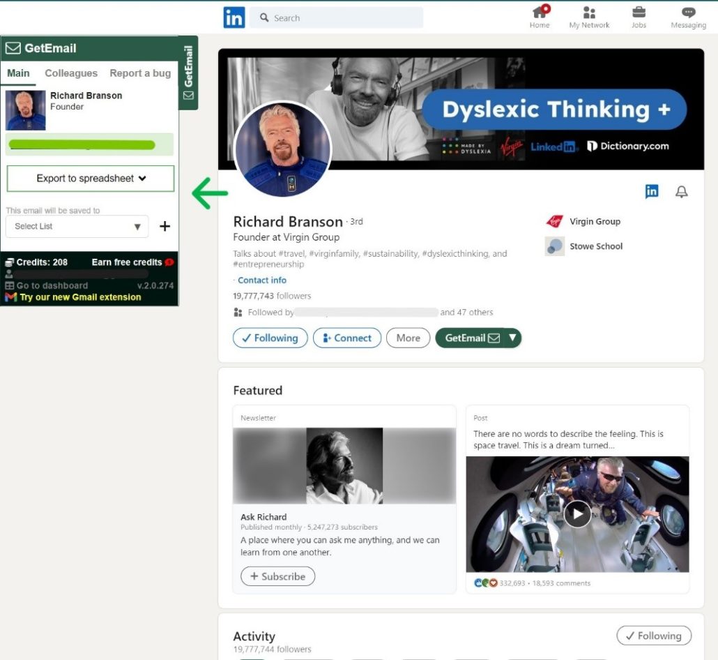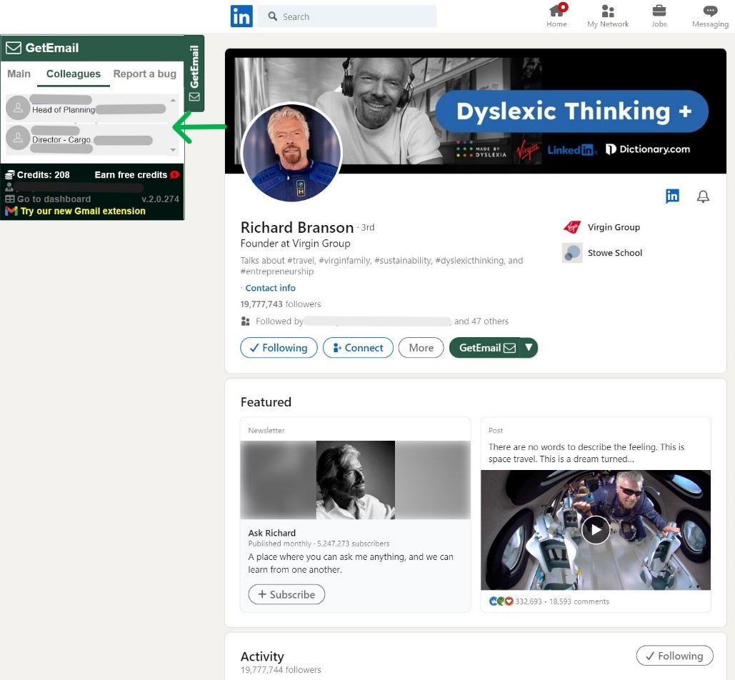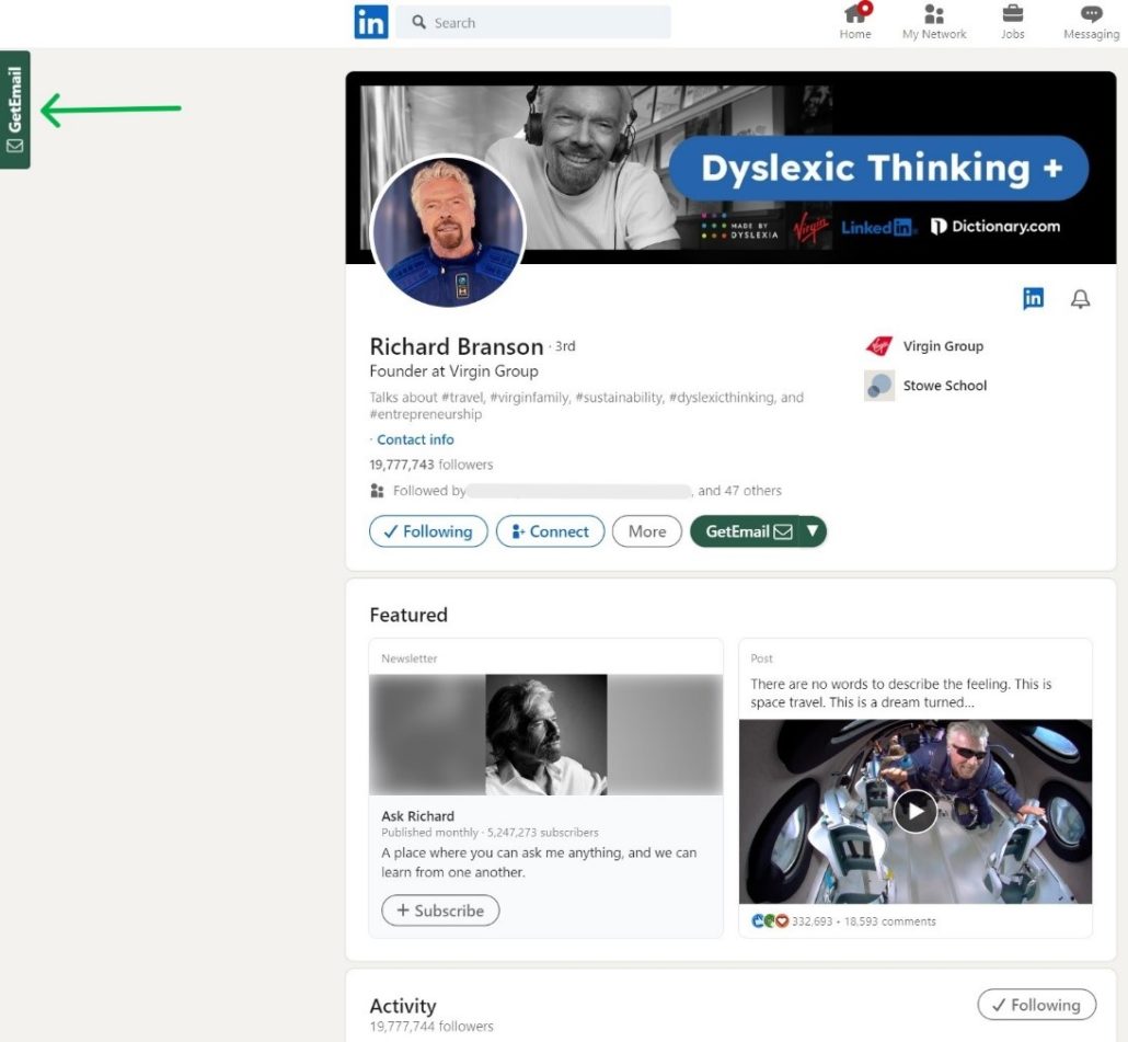 Here I am in my LinkedIn profile with GetEmail.io’s extension already installed. If you haven’t downloaded it yet, here’s our extension for LinkedIn and Gmail as well.