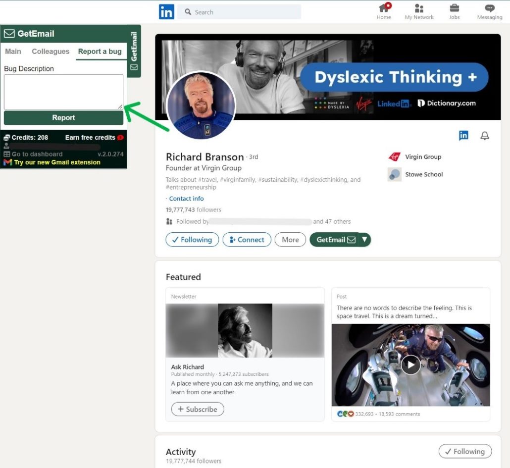 Now this is all pretty easy and amazing, isn’t it? With one tiny pop-up, we offer many more features, like a real-time update of your credit balance, options to earn more free credits, a link directing to your dashboard, and an option to try out our Gmail extension as well. The Gmail extension is just as cool and easy to use as our LinkedIn one, if not more so!