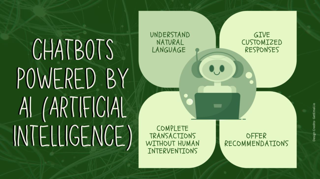 Chatbots powered by AI can assist in answering common queries, making recommendations, and even completing transactions without the need for human participation.