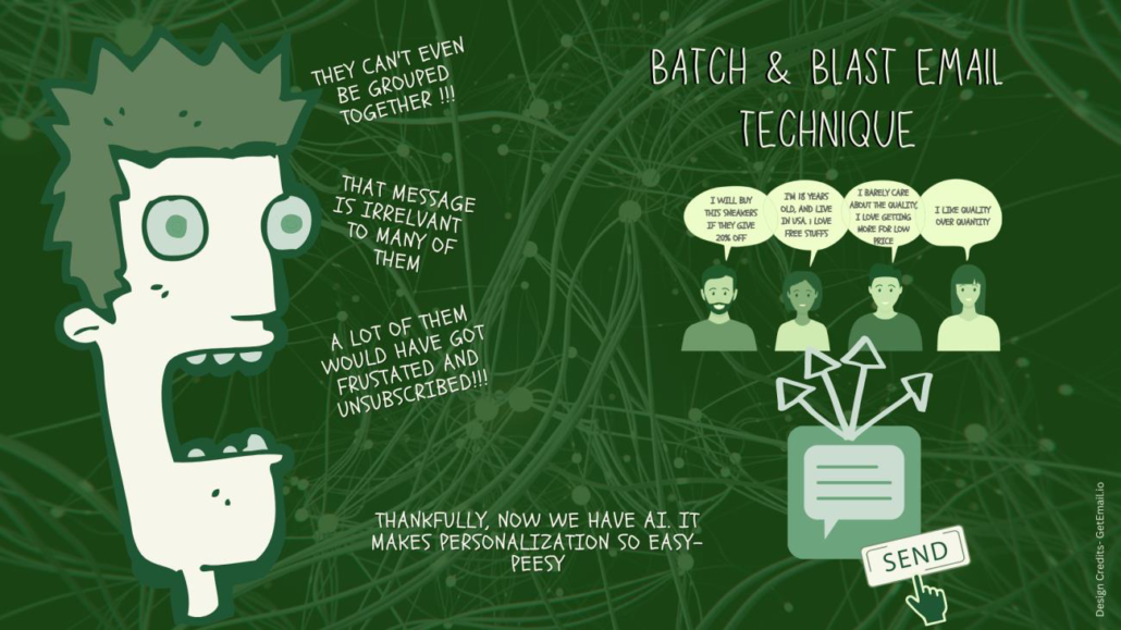 If you are curious about what this means, the batch and blast email technique was popular in the early days of email marketing. This method entails composing an email with a single message and sending it to many individuals, regardless of their interests, behavior, or preferences.